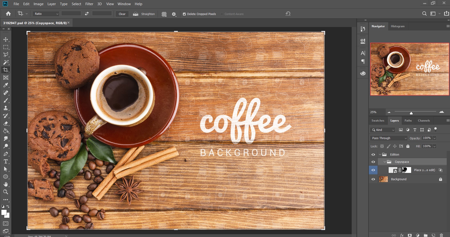Tema rustic sering kali dikaitkan dengan gaya desain yang natural, sederhana, dan otentik. Dalam karya ini, latar belakang rustic dipadukan dengan elemen visual cangkir kopi dan kue, menciptakan suasana hangat yang cocok untuk berbagai keperluan desain, seperti: